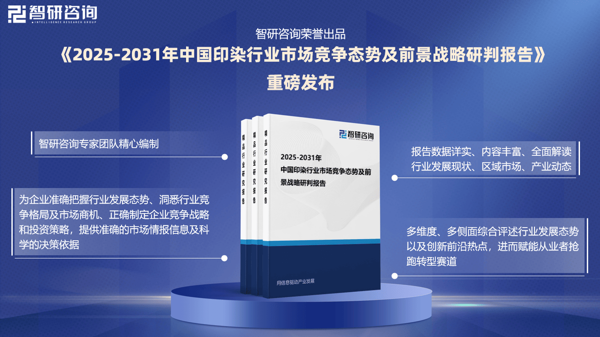 做为一个了中国印染行业十余年成长的专业机构,智研征询但愿可以或许取所有努力于取印染行业企业联袂共进,供给更多无效消息、专业征询取个性化定制的行业处理方案,为行业的成长尽绵薄之力。1:本演讲焦点数据更新至2023年12月(演讲中非上市企业受企业信批影响,演讲预测区间为2025-2031年。2:除一手调研消息和数据外,国度统计局、中国海关、行业协会、上市公司公开演讲(招股仿单、让渡仿单、年报、问询演讲等)等权势巨子数据源亦配合形成本演讲的数据来历。一手材料来历于研究团队对行业内沉点企业获取的一手消息数据,次要采访对象有企业高管、行业专家、手艺担任人、下旅客户、分销商、代办署理商、经销商以及上逛原料供应商等;二手材料来历次要包罗全球范畴相关行业旧事、公司年报、非盈利性组织、行业协会、机构及第三方数据库等。3:演讲焦点数据基于智研团队严酷的数据采集、筛选、加工、阐发系统以及自从测算模子,确保统计数据的精确靠得住。4:本演讲所采用的数据均来自合规渠道,阐发逻辑基于智研团队的专业理解,清晰精确地反映了阐发师的研究概念。智研征询做为中国财产征询范畴带领品牌,以“用消息驱动财产成长,为企业投资决策赋能”为品牌。用自从研发算法,连系行业交叉大数据,挖掘定量数据背后根因,分解定性内容背后逻辑,客不雅实正在地阐述行业现状,审慎地预测行业将来成长趋向,为客户供给专业的行业阐发、市场研究、数据洞察、计谋征询及相关处理方案,帮力客户提拔认知程度、盈利能力和分析合作力。次要办事包含精操行研演讲、专项定制、可研演讲、贸易打算书、财产规划等。供给周报/月报/季报/年报等按期演讲和定制数据,内容涵盖政策监测、企业动态、行业数据、产物价钱变化、投融资概览、市场机缘及风险阐发等。